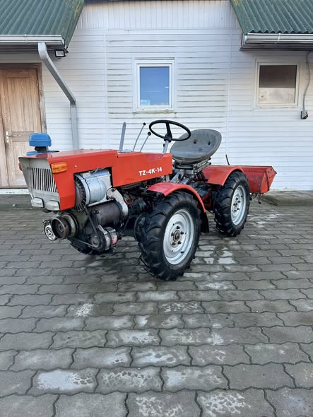 Вот, например, только что отремонтировали мини-трактор TZ-4K-!4 чешского производства. Отремонтировали карбюратор. А сейчас он выставлен на продажу за 3200 евро.  К нему прилагаются культиватор и лопата для чистки снега.
